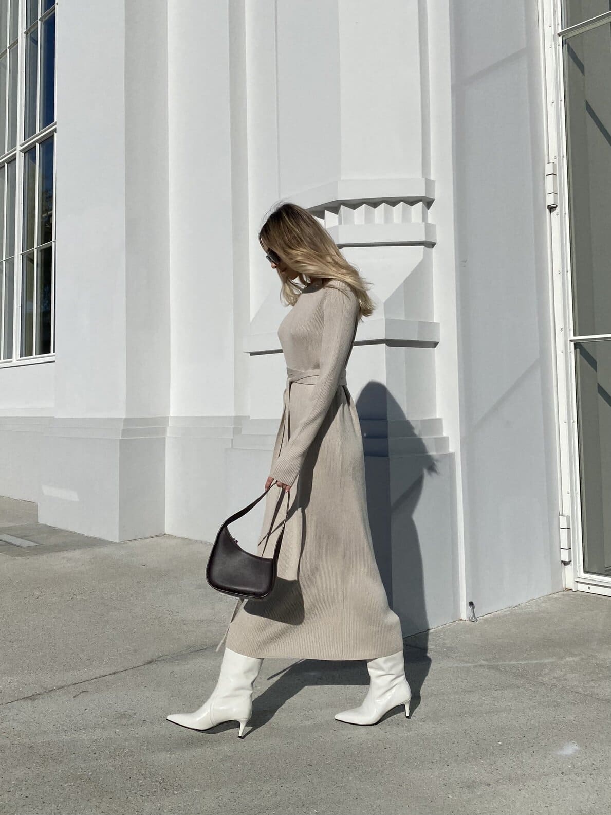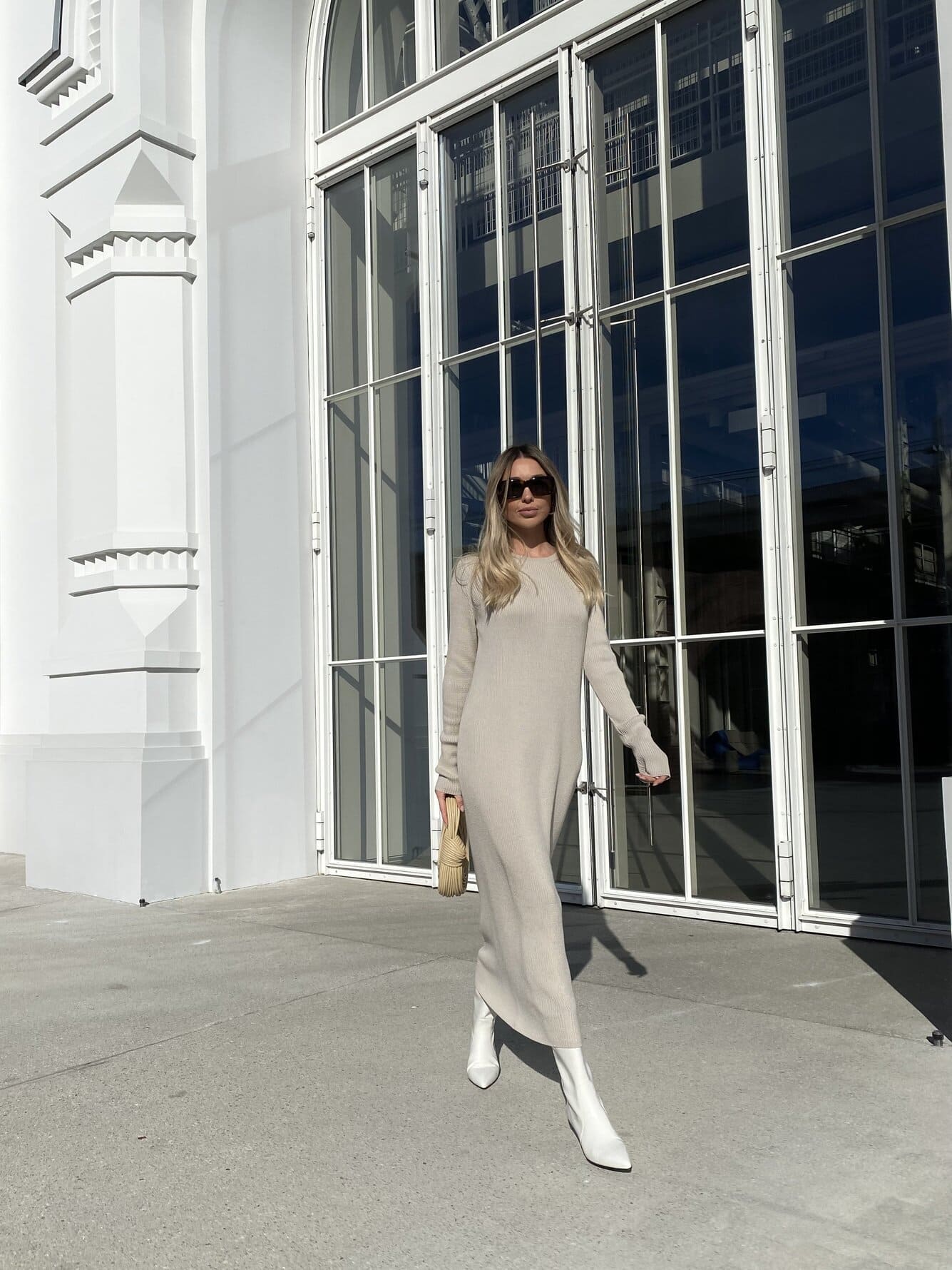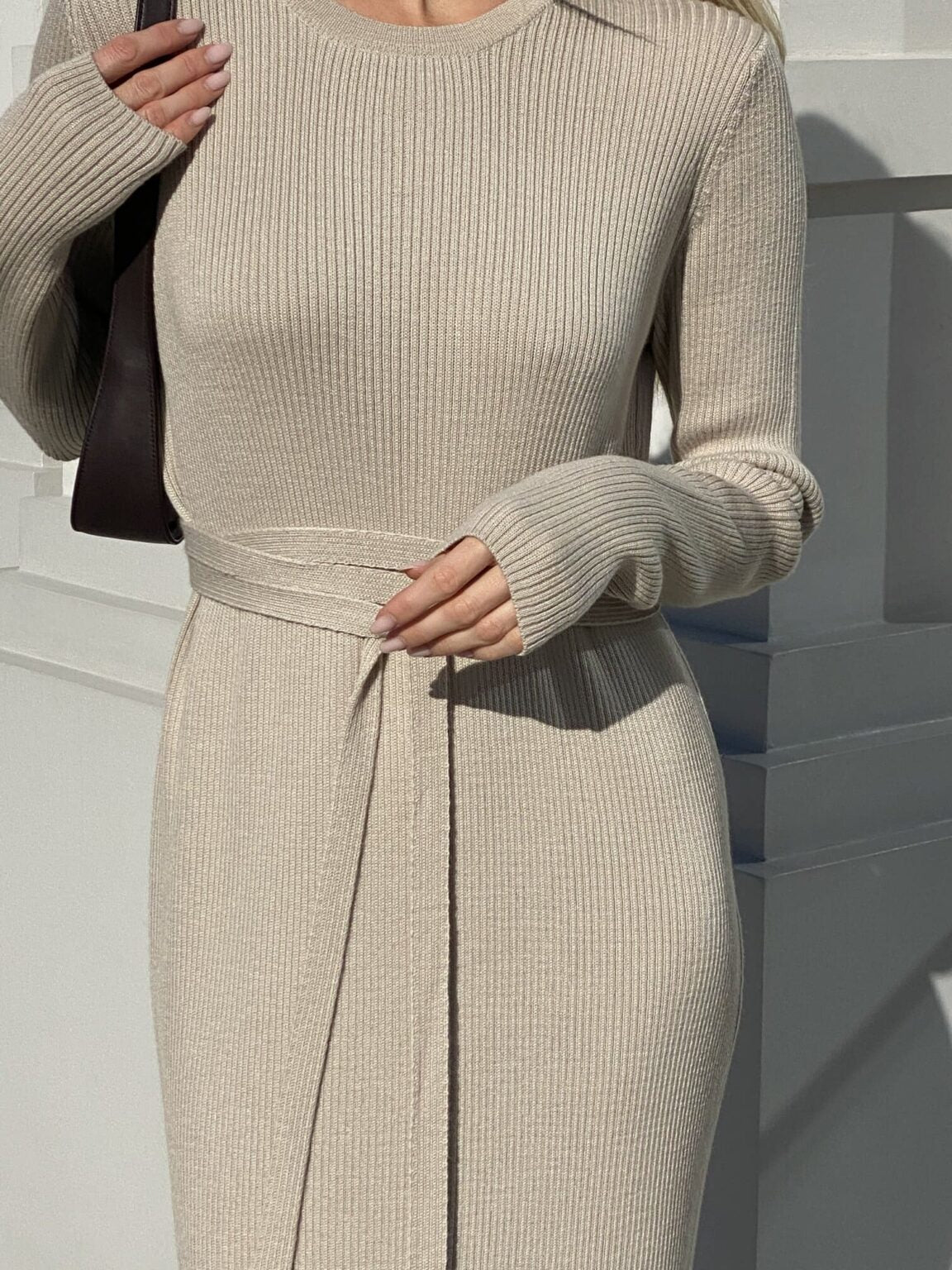 Long beige merino wool dress